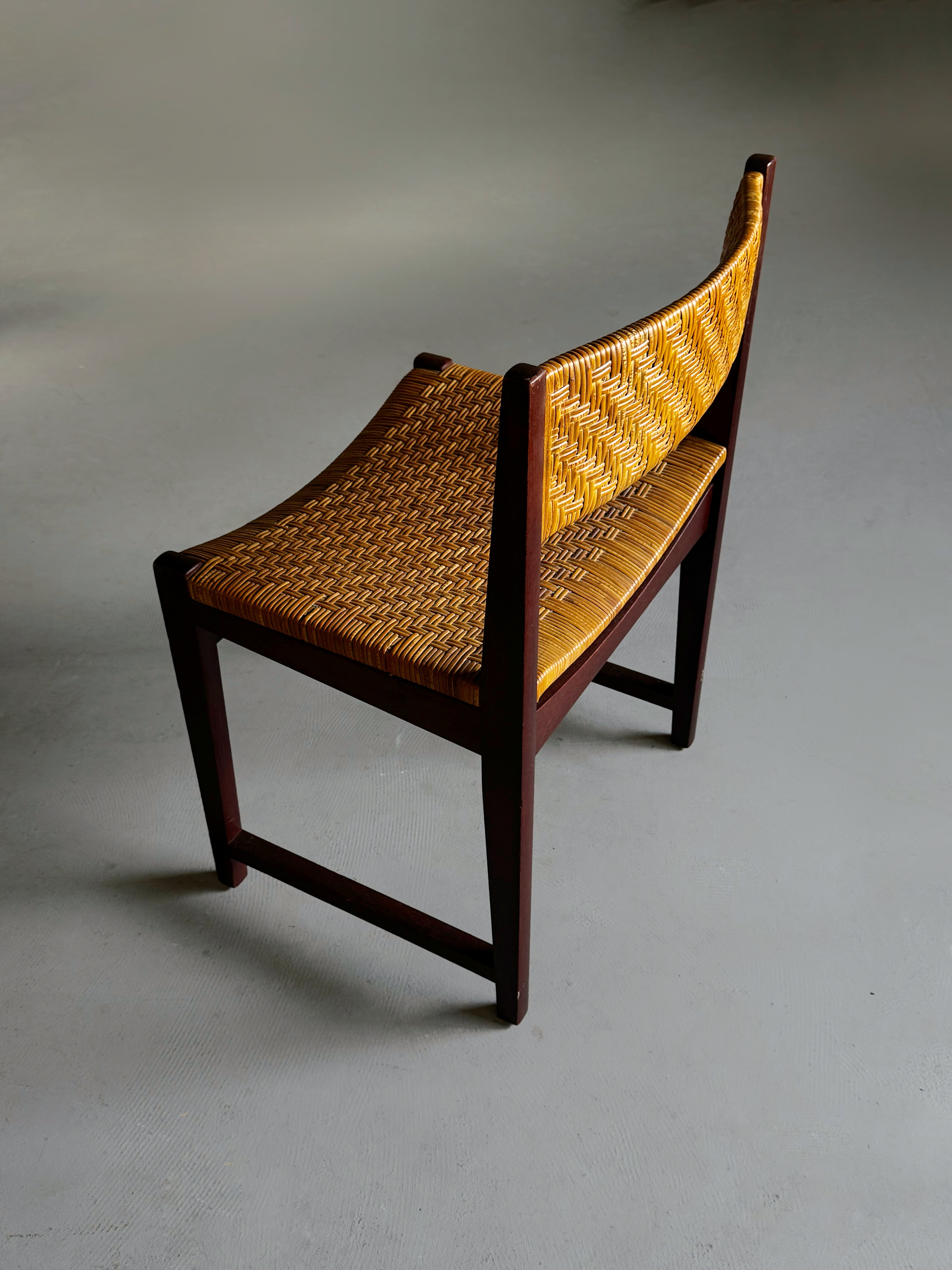 背もたれ及び座面細部の形状が非常に美しい作品です。緩やかに湾曲しながら編み込みで表情をつける手腕が作家の思慮深さを含んでいるように感じます。特徴ある貫の位置もピーター・ヴィッツ&オルラ・モルガード・ニールセンならでは。デザインへの追求が椅子に表れています。風情ある豊かな空間を演出してくれそうな素敵なチェアです。