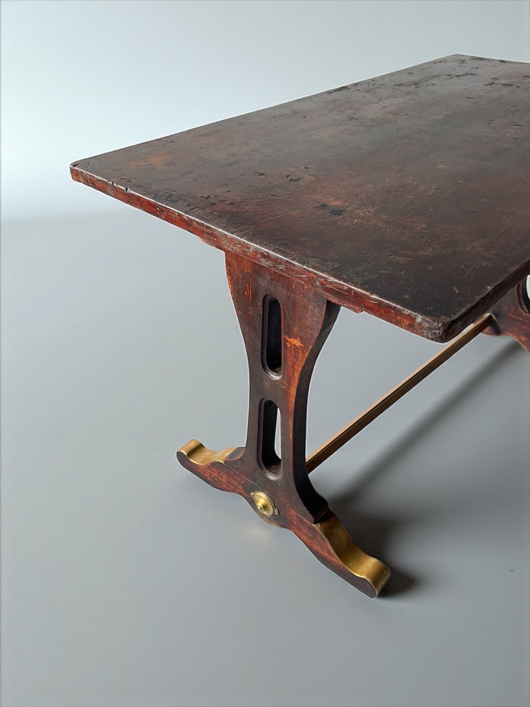 1900年代初頭、ヨーロッパのカフェ文化が社交と創造の場として花開いた時代に生まれた趣あるビストロテーブルです。天板には、幾重にも重ねられた”時の跡”が宿り、金属パーツとの対比が美しいバランスを描いています。アール・ヌーヴォー様式を想起させる脚部の意匠は素材と形状が調和しており、手仕事の緊張感を今に伝えます。どの角度からも過剰な主張は控え、それでいて確固たる存在感があります。カフェ文化が成熟し始めた20世紀初頭のパリを想わせる、時代を刻んだ象徴的なテーブルです。